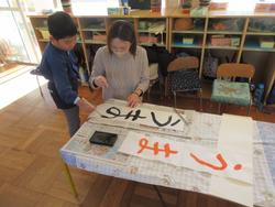 年長さんは、自分が書きたい字を決めて、長半紙に字をしたためました。