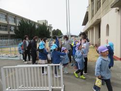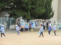 1学期は別所認定こども園で行いましたが、今回5歳児は三樹幼稚園で待ち合わせ!