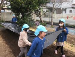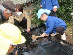 子どもたちは、マルチシートを張るところまで畑仕事を頑張りました!