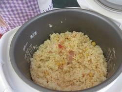 以前いただいたフィリピン米が余っていたので、そこにベーコンとコーン、玉ねぎ、