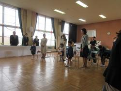 ちょっと緊張気味のひまわりさんたち、でもお家の人と一緒にちゃーんとお話を聞いて式に参加していましたよ(^^)