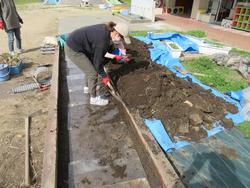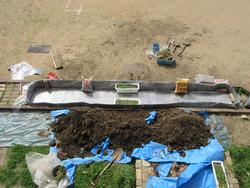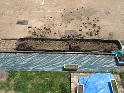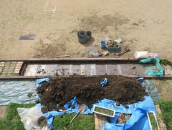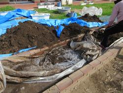 昨年度の土を一度取り出して下に敷いていたビニールシートを取り出し、新しいものに新調しなければなりません。