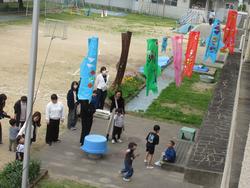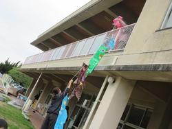 そして、出来上がった色とりどりのこいのぼりを外で泳がせてみました!