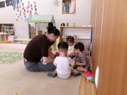 本園の0~2歳児の保育では、「確かな愛着関係を築くこと」「好きな遊びを自分で選んで楽しむ中で発達を促すこと」を大切にしています。