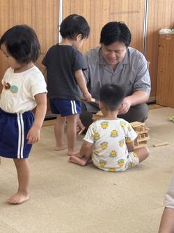 0・1・2歳児クラスで、保護者の方に普段の保育の様子を体験していただく『保育参加』を9月に行いました。『子どもたちのために…』と各日1~2名の保護者の方が都合の良い日を選んで参加してくださいました。お部屋では子どもたちがまるで自分のパパ、ママであるかのように甘えてお膝の上に座ったり、絵本を読んでもらったりと楽しい時間を過ごしました。クラスの雰囲気を体感しながら、園生活での様子や成長を感じていただくことができました。子どもたちを温かく見守り、楽しい時間を共有してくださった保護者の皆様、ありがとうございました!!
