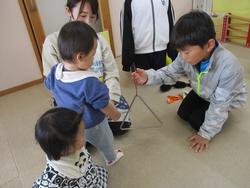 乳児のお部屋にも遊びに来てくれました。なんと自分の兄弟がいたので、感動の再会(!?)ほかの子たちも大喜びで大歓迎でした。
