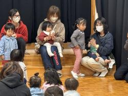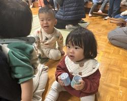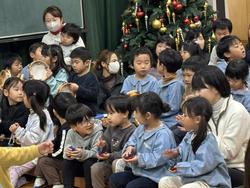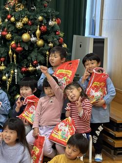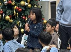 音楽会が終わり、今年最後12月の誕生会。クリスマスツリーや室内の装飾を見て、楽しい気持ちが大きくふくらむ会となりました。誕生児だけど、まだしゃべることができない0歳児のために、2歳児のお姉さんが出てきて「私が話す!」とみんなの前で名前や年齢を教えてくれました(≧▽≦)優しい気持ちが嬉しいですね。