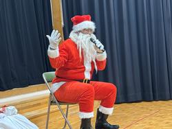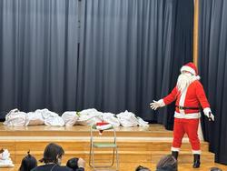 誕生会の後は楽しみにしていたクリスマス会!なんと、今朝こども園に素敵なお手紙が届いていたのです。それは、遠くまで響いていたこども園の音楽あそびの声や楽器の音、合奏の音色を聴いていたサンタクロースさんから「こども園に行くよ」というお手紙でした。
