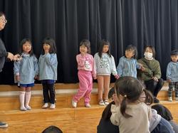 誕生会の後には、『お別れ会』。今年度、年長さんは「おたすけポスト」を活用して、こども園のみんなのためにいろいろなお助けをしてくれました。絵本の読み聞かせやダンス、和太鼓を教えてくれたり、ごみ集めや牛乳パックの回収、いろんな遊びも計画してくれ、こども園のみんなを引っ張っていってくれました。そんな憧れの年長さんに一年間の感謝の気持ちを込めて『お別れ会』を開きました。司会進行は、来年度の年長になる4歳児の子どもたち!みんなの前で堂々とマイクで「みんなで○○をします」と進めてくれてみんなが笑顔になりました。