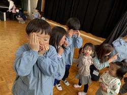 ↓ 年長さんと向き合って、にらめっこ対決!本気でやっているので、すごい顔になってます。年長さんの本気の変顔に乳児さんは目を丸くしていました( *´艸`)