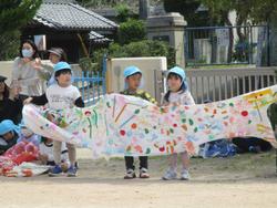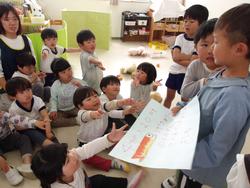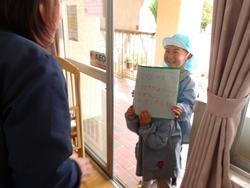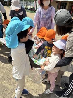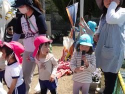 担任から、「じゃあ、年長さんにお手伝い頼みたいなってお願いされた時は、いいよってお返事してもいい?」と問うと、「お手伝いを頼まれるのが嬉しい」と笑顔いっぱいで応え、素敵な鯉あげ式になったと大満足!!