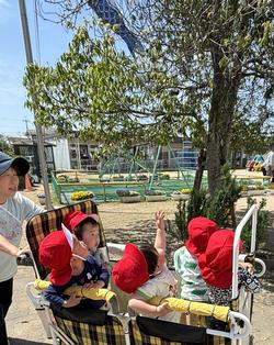 鯉のぼりが元気に泳ぎだすと、「がんばれ~がんばれ~!」と手拍子しながら応援したり、風に泳ぐ鯉のぼりが触れそうと感じたのか手を伸ばす姿もみられました( *´艸`)