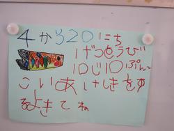 「4月20日 月曜日 10時10分 鯉あげ式をするよ 来てね!」