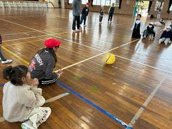 協力して転がします。「自分からボールを触ってくれた!」と友だちも嬉しそうです。