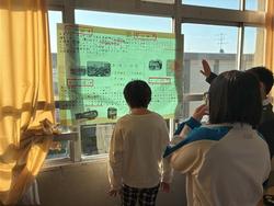 まとめた模造紙を見たり、説明を聞いたりしました。
