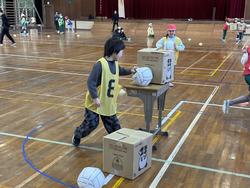 次は、チームの特訓タイムです。ボールを投げたりキャッチしたりする練習をしました。